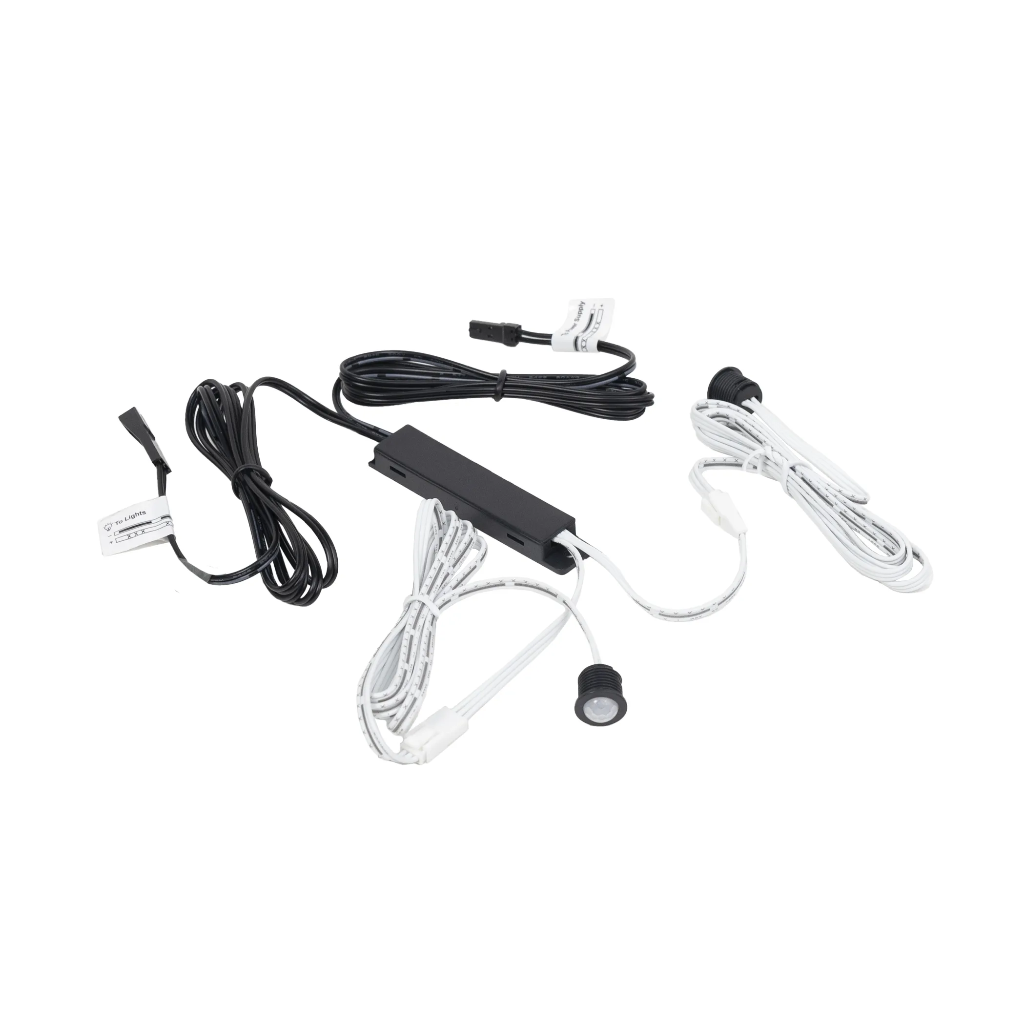 Датчик движения двойной с креплением, срабатывает на движение, расстояние до 3м, рабочее напряжение 12- 24VDC, мощность 60W, степень защиты IP20, способ установки врезной или накладной, размер установочного отверстия 12мм, длина провода до блока управления 1 м, длина проводов от блока управления до источника света и блока питания по 100 см, угол срабатывания до 120 градусов. Автоматически выключает питание при отсутствии движения более, чем 30 сек. Цвет выключателя: черный.