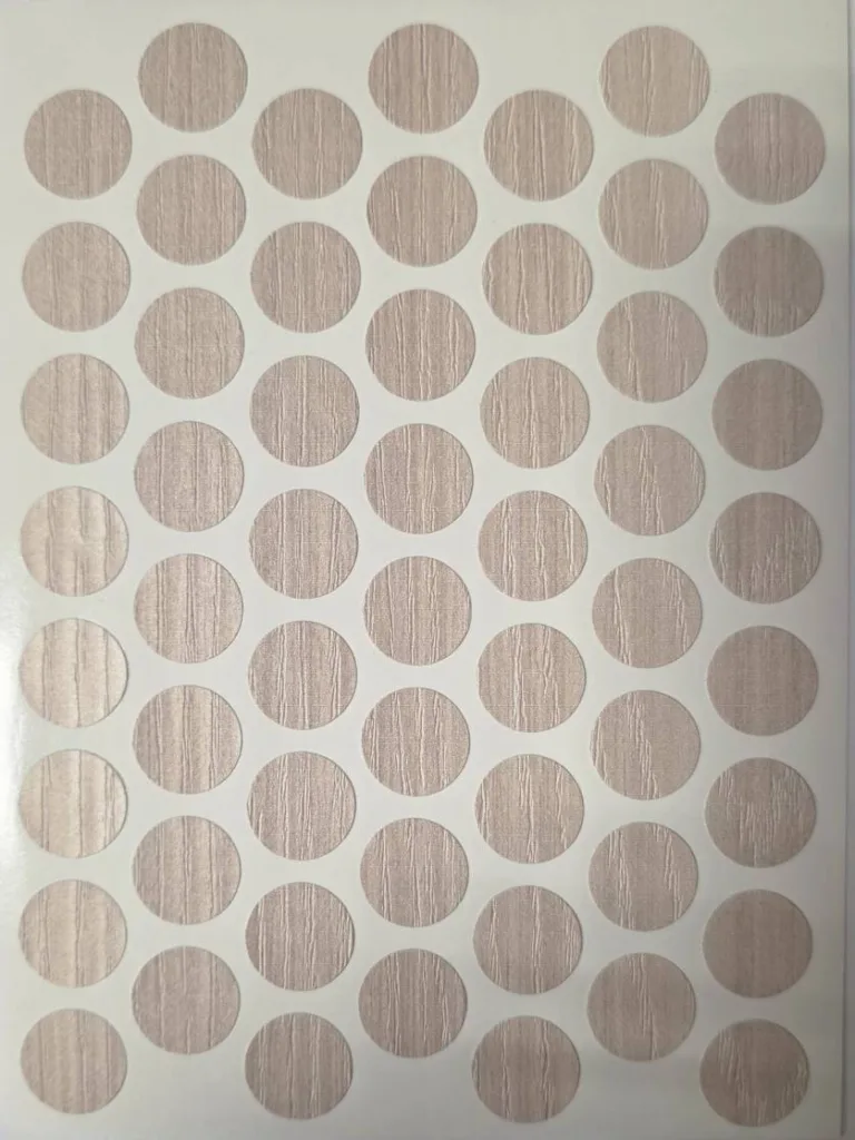 Самоклеящиеся заглушки используются для маскировки головок саморезов, конфирматов (евровинтов) и эксцентриковых стяжек на мебели. Они изготавливаются из тонкого ПВХ или меламина с нанесенным клеевым слоем, что позволяет быстро скрыть крепеж, не увеличивая толщину детали.