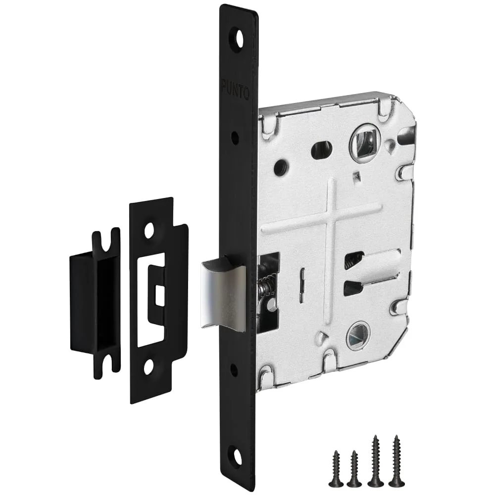 Защёлка врезная Punto L72-50 BL — это надёжное и стильное решение для ваших дверей. Она изготовлена из прочного металла и имеет чёрную лицевую планку с прямоугольной формой.